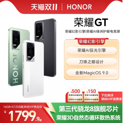 HONOR/荣耀GT 5G智能手机幻影引擎第三代骁龙8旗舰芯片NFC游戏学生